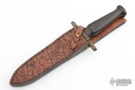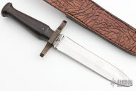 This Chatu Dagger by Murad Custom Knives features a hand rub satin finished double edged blade with nice hamon, .138" blade stock and 1.202" blade depth, hidden tang construction. The handle has an antiqued brass guard and a Japanese Rosewood grip. Comes with a brown leather sheath and COA. New from maker.