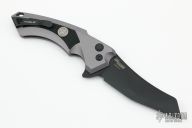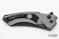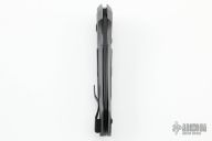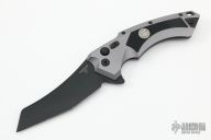 The EX-A05, by Hogue Knives and Sig Sauer, features a black coated blade made from CPM-154 steel. The handle is charcoal aluminum. Includes a black stainless steal, reversible clip, tip up carry. The knife has a forward fire safety. There is a lanyard hole towards the butt of the knife. Includes original box, papers and padded zippered case. Has a scratch on the clip, otherwise excellent condition.