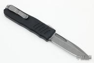 Add a state of the art OTF automatic to your rotation with the RECON-035 from Guardian Tactical. This RECON model is built with a stonewashed blade and a black anodized handle. Guardian Tactical's patented OTF mechanism provides smooth, responsive opening action. The unique thumb slide design is separated from the aluminum handle by a steel plate and 3 ceramic balls that eliminate grinding and wear. An innovative locking mechanism sits off to the side of the blade channel so it doesn't drag against the blade when opening and closing. These features eliminate the friction on the blade and button that have always plagued OTF knives. Take your OTF game to the next level with the Guardian Tactical RECON-035. Features: Anodized aluminum handle is compact and lightweight for durable everyday carry. Innovative OTF mechanism offers fast and smooth opening action for responsive tactical deployment. Item includes a stainless steel pocket clip for secure tip-down carry. S/N 7532. Comes with original box. Excellent condition.