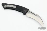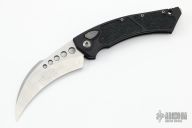 This Hawk Auto by Microtech Knives features a stonewashed hawkbill blade. The handle has a black aluminum frame with blasted stainless steel hardware and tip up clip. Dated 08/2020 and s/n 1339. Includes the original box and papers.   Excellent Condition.