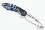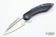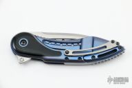 This Glimpse by Todd Begg Knives features a beautiful hand rub satin finished spear point CTS-204P blade with false top edge and a flipper. The handle has a tumbled and anodized titanium frame with black linen micarta inlays, jewel iced titanium backspacer and tip up clip. Rides on IKBS bearings, nice detent, lockup and blade seating. Comes with original box, papers and COA. Light scratches are visible on the blade and handle otherwise the knife is in excellent condition.