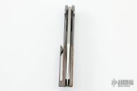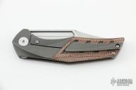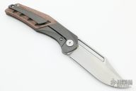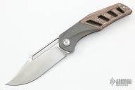 Adam Purvis joined forces with We Knife Co. to bring you his first APurvis Blades production line, the Primordial. Adam wanted to create a high quality EDC knife at a price point that normal working people could afford. The Primordial is nimble and lightweight in hand, with a modified clip point blade that provides versatile cutting performance with a sharp tip and a slight recurve edge. Tackle your daily cutting tasks in style with the Primordial from APurvis Blades. Features: Blade runs on a ceramic ball bearing pivot for authoritative deployment. Steel reinforced titanium lockbar offers secure lock up and over-travel protection. Item includes a milled titanium pocket clip for convenient everyday carry. This knife has a tumbled titanium handle with micarta scales, and a matching tip up clip. It has a hand rub satin finished clip point recurve blade with swedge and thumbhole. Comes with original box and papers. Excellent condition.