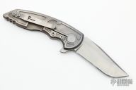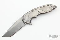 From Hoback Knives: The A8 is the down-home, hard-work inspired folder. We built this knife to be at home in your pocket, so it’s always where you need it and you don't have to think about it. It just plain works. We took the A10 folder and scaled it down to be much more pocket-friendly, while still being large and in charge! The A8 still sports a 3.25” long blade like its A10 big brother, but it’s much narrower and slides into the pocket with ease. And anytime you see the word “Slimline,” you know the knife will be lighter, faster, and thinner for even more ease of carrying. It will boast the same strength and precision engineering you have come to expect from Jake Hoback Knives. SPECIFICATIONS: Blade: CPM-20CV, 3.25 Length, .1875 Thickness, stonewash finish Frame: Grade 38 Titanium, .1875 Thickness, Stonewash blade finish. Closed Length: 4.66" Open Length: 7.796" Weight: 4.7oz. Other Features: Pivot Thrust Bearings HRD (Hoback Roller Detent) Engineered Internal Lightening Pockets (less weight, same strength) Standard Sizes on all Screws for Ease of Replacement Hardened Steel Bearing Races. Comes in the original wooden box with certificate of authenticity and allen tools needed to disassemble knife. Has had the anodization removed, and the blade has been resharpened. Great condition otherwise.