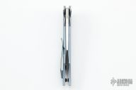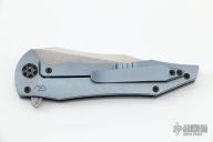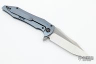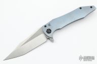 This Tiger is designed by Gavko Knives and produced by CKF. It features a satin and tumble finished blade with flipper tab. The handle has an anodize and tumble finish titanium frame with matching tip up clip. Nice detent, lockup and blade seating. Blade favors the right side a touch. Comes with original pouch and COA. Excellent condition.