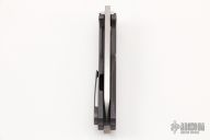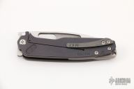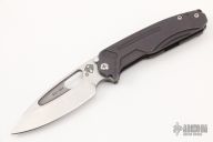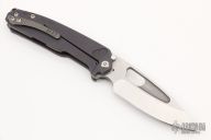The all Titanium Infraction, by Medford Knife and Tool features a tumbled finished drop point blade with a recess and oversized thumb hole. The handle is composed of anodized titanium. The tip up carry pocket clip is composed of tumbled titanium. Has some light scratches, otherwise excellent condition. Nice detent, lockup and blade seating. Comes with original box, papers and hard case.