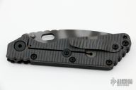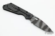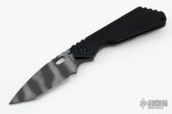 This MSC SMF framelock folder by Mick Strider features a tiger striped tanto blade and a dimple pattern black aluminum and flamed titanium frame and tip up titanium clip. Includes Hinderer "Lock Bar Stabilizer" for maximum reverse lock retention. Nice detent, lockup and blade seating. New condition.