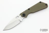 This SNG framelock folder by Mick Strider features a stonewashed blade and a dimple pattern green G-10 and flamed titanium frame and tip up titanium clip. Includes a "Lock Bar Stabilizer" for maximum reverse lock retention. Nice detent, lockup and blade seating. New from maker at the 2022 Blade Show.
