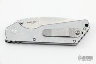 This SA3 Pro-Strider SnG Auto by Pro-Tech features a stonewashed blade with notched thumbrest. The handle has a black G-10 and stonewashed stainless steel frame with matching tip up clip. Excellent condition. Comes with a Pro-Techbox and papers.