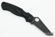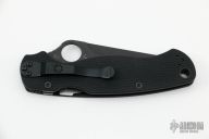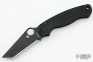 This G81GM4BKP2 Paramilitary 2 by Spyderco features a black tanto blade with thumb hole, notched thumb ramp and choil. The handle is comprised of textured black G10 scales over a stainless steel subframe and lockbar. 4 way adjustable pocket clip and lanyard tube in pommel. Includes original box and paperwork. Excellent condition.