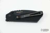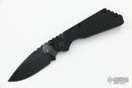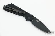 This Pro-Strider PT by Pro-Tech and Strider Knives features a black 154CM blade with notched thumbrest. The handle has a knurled black aluminum frame with black hardware and black stainless steel tip up clip. Comes with original box and papers. New condition.