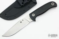 This Bradley Bowie by Spyderco features a satin finished blade with false top edge, .158" blade stock and 1.240" blade depth, full tang construction with black G-10 scales. Comes with a kydex sheath. Has some light scuffs, otherwise excellent condition.