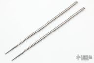 Feed yourself and your pride of ownership with these exquisitely crafted titanium chopsticks. Designed and engineered by world-renowned custom knifemaker Alan Folts and manufactured under the Foltsum™ brand, these chopsticks are beautifully crafted from solid 6AL 4V titanium stock. Their two-piece construction allows them to be conveniently carried when not in use, yet assembled in seconds thanks to a precision threaded joint. Machined in painstaking detail, they feature three different surface finishes, including a bead blasted area near the tip for a secure grip on food, a satin-finished center section, and a rich color-anodized handle section. Machined accents at the top and center add both a touch of style and a thoughtful grip texture that complements their perfect balance.Remarkably strong and lightweight, these elite eating utensils are also 100% corrosion resistant, completely food safe, hypoallergenic, and easily cleaned with ordinary soap and water. They come complete with a ballistic nylon carry pouch with dedicated pockets for all four pieces and a heavy-duty Velcro® closure.