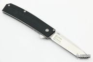 Blurring the lines between traditional design and modern technology, the 601 Tengu epitomizes the style of Jared Oeser's custom designs. This slim and classy flipper is packed with detail, from the CPM-20CV blade to the dual-colored G10 handles. Complete with a black leather carry sleeve, the Tengu is bound to impress those looking for something different.