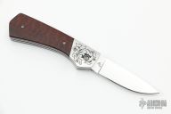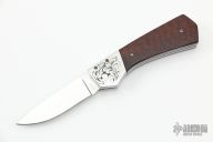 Mike "Whiskers" Allen and his wife Denise have been in the custom knife business since 1984. Mike has been a member of the Knife Maker's Guild since 1989. He has built a great reputation specializing in custom folders, scale release autos, and bolster release autos. "I take pride in sole authorship of my knives. From the basic design, grinding and assembly, to the embellishments of file work, and engraving."