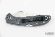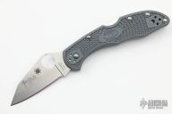 This knife by Spyderco was customized by Michael Janich, it has a satin finished blade with thumbhole opener and notched thumbrest. The handle has gray FRN scales and a 4-way reversible stainless clip. Comes with original box. Excellent condition.