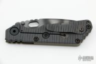 In 1988, he began making specialized knives for use by the military. This turned out to be fortunate turn of events, both for Mick and for the knife using world at large. Mick’s approach was to not get burdened by the weight of past designs. He started with a tabula rasa, a clean slate, informed only by his own experiences and knowledge of what a soldier needed in a knife. The knives he made didn’t look like the hunter-inspired knives seen in most PXs; instead they were almost brutish in their functionality: beefy, solid, and with unbreakable ¼” stock full tangs. These knives were the first indication of his innovative approach: in addition to their utilitarian design, the knives carried a subdued finish and subdued sheaths. No one carrying a Strider knife was going to be spotted because of sunlight glinting off of polished steel or a glossy leather sheath. Soldiers, policemen, and other men going into harm’s way couldn’t buy them fast enough. Mick sampled some good ideas, but made them great. For instance, he was not the first to wrap a knife handle with paracord, but he was the first to do it in a way that was tough enough for sustained infantry use. His knife line grew over the following years to include different varieties of fixed blades, all distinctive and many with specialized uses. But constant in all of them was a disregard for convention, and a desire to try new ideas. An example of this was the Ajax – it featured a very wide blade surface clearly designed to inflict damage. It drew on the weapons carried by Roman legionnaires, yet was modern and usable in the 21stCentury battlefield. Mick also worked on his technical skills, always striving to become better at the physical craft. At the 2002 Blade Show, a group of the best tactical knifemakers in the country decided to compete with each other to produce the most innovative and interesting fixed “battle blade” at the show. Mick’s entry, an incredible integral knife made out of ½” titanium stock with a zippered composite blade, gorgeous handles, and integral guard was the unanimous winner, and effectively retired the competition.
