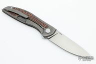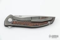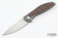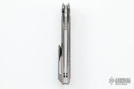 This Neon NL by Shirogorov features tumbled blade with notched thumbrest and flipper. The handle has a tumbled titanium frame with crazy micarta inlays. Comes with box and papers. Rides on MRBS. Excellent condition.
