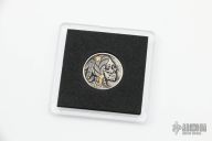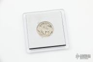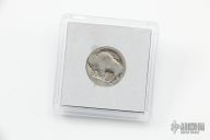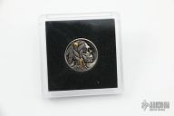 Flowered Skull hobo nickel by Tom Sterling. Hand engraved from an undated Buffalo nickel, 24 karat gold inlays. Comes with plastic case and COA. New from maker.