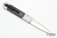 This Godfather has a satin finish blade and "special grey" handle with carbon fiber inlays. Black coated stainless steel clip. Includes original box. Excellent condition.