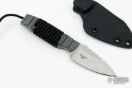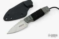 This fixed blade knife by Boker was designed by German knifemaker Steffen Bender. He developed an ingenious concept of interchangeable handle scales without the use of any tools. When attached to this stout, sturdy fixed blade, the scales are as secure as a bolted scale. A simple winding of the paracord through pre-set holes in the tang offers you the choice of a black Micarta (included), green canvas Micarta or orange Micarta handle (each sold separately). Modify the look with different color paracord if you like! The blade steel is 440C with a stonewash finish. Includes a Kydex sheath, Tek-Lok compatible (Tek-Lok included). Comes with original box and papers. New condition. DISCONTINUED.