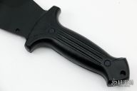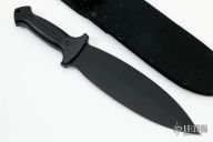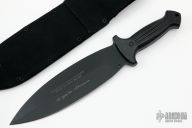 This Combat Smatchet by Boker features a double edged black blade, .169" blade stock and 2.766" blade depth, full tang construction. The handle has black composite scales. Comes with a black nylon sheath with a belt loop. #029/500 on blade along with "Rex Applegate  W.Z. Fairbairn". Cracks in handle scales, otherwise good condition.