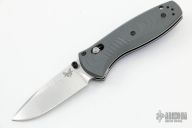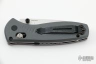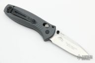 This 585-2 Mini-Barrage from Benchmade features a stumbled drop point blade with swedge and dual thumbstuds. The handle is comprised gray FRN scales over stainless steel liners. This knife also features the AXIS lock mechanism and sliding safety on spine. Includes original box and paperwork. Excellent Condition.