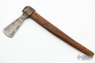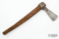 This Trade Axe is believed to be from the 1800s. Has some patina and some dings in the edge. 10.5" hand carved wood handle.