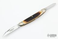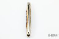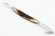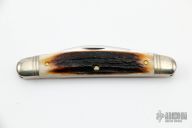 This slipjoint by Northfield Knives features mirror polished blades with nail nicks. The handle has nickel silver fluted bolsters, sambar stag covers, brass liners/pins. Comes with original tube. Excellent condition.