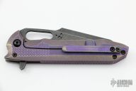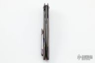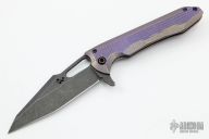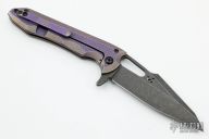 This Mako framelock flipper from Gavko Knives features a dark tumble finished blade with a flipper. The handle has anodized, milled and tumbled titanium scales that have a titanium clip positioned for tip up carry. Nice detent, lockup and blade seating. Comes in a zippered pouch. Excellent condition.