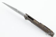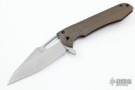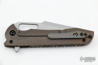 This Mako framelock flipper from Gavko Knives features a tumble finished blade with a flipper. The handle has anodized, carved and tumbled titanium scales that have a titanium clip positioned for tip up carry. Nice detent, lockup and blade seating. Comes in a zippered pouch. Excellent condition.
