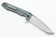 This Mako framelock flipper from Gavko Knives features a tumble finished blade with a flipper. The handle has anodized, carved and tumbled titanium scales that have a titanium clip positioned for tip up carry. Nice detent, lockup and blade seating. Comes in a zippered pouch. Excellent condition.