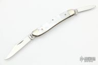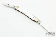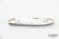 This slipjoint from Case Knives features two mirror polished blades with nail nicks. The handle has nickel silver bolsters with pearl covers over brass liners and stainless steel spring. Includes the original box and papers.  Excellent condition.