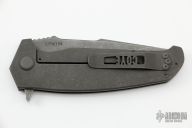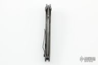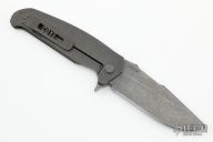 This Whiskey II by Bill Coye features a tumble finished blade with notched thumbrest and a flipper. The handle has a tumbled titanium frame with a tip up titanium clip. Nice detent, lockup and blade seating. Rides on bearings. Comes with original packaging dated July 9, 2015. Excellent condition.