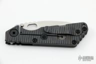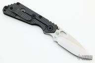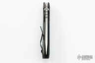 This SNG framelock folder by Mick Strider features a stonewashed blade and a dimple pattern black G-10 and flamed titanium frame and tip up titanium clip. Includes a "Lock Bar Stabilizer" for maximum reverse lock retention. Nice detent, lockup and blade seating. Has a couple light scuffs, otherwise excellent condition.