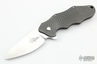This Wrinkle by Ken Onion features a hand rub satin finish blade with flipper. The handle has a milled and bead blasted titanium frame.  Matching titanium clip. Notched thumbrest on frame. Nice detent, lockup and blade seating. Has a few light scuffs, otherwise excellent condition.