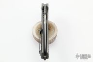 The Nitro Mini flipper from Peter Carey features a stonewashed, 20CV blade with satin finished flats. The handle consists of titanium that has Mr. Carey's easily recognizable machined pattern on the outside and milled pockets in the inside to reduce the weight of the knife, making this a very edc friendly knife at less than 5 ounces. The blade is centered when closed, flips very well on caged stainless steel bearings, and locks up with no play. Very crisp detent. Titanium pivot screw, Hinderer style lockbar stabilizer, backspacer, and flamed pocket clip that is positioned for tip up carry. These knives are 100% made in the USA. Excellent condition. Comes with a zippered case.