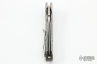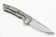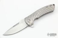 The Hyrax flipper by Defiant7 Knives is a Wilson Combat Special edition, has a milled and tumbled titanium frame lock handle with a stonewashed titanium pocket clip and backspacer. The blade is CPM-154 stainless steel with a stonewash finish and hollow grinds. Nice detent, lockup and blade seating. Comes with a zippered case and original box. Excellent condition.
