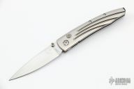 This William Henry is about style and performance. Sleek, light, tough, and elegant, each of these knives showcases the unmatched sharpness of ZDP-189 laminate blade steel with the durability of titanium handles. Smoky Quartz inlays in the thumb stud and button lock. Titanium pocket clip for easy and secure carry. Excellent condition. Comes with original box and COA.