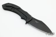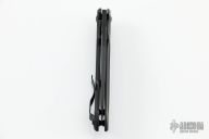 This Shadow Framelock Flipper by Fox Cutlery and Bastinelli features a black stonewashed blade with notched thumbrest, fullers and flipper. The handle has a milled and black stonewashed titanium frame with matching tip up clip. Comes with original box, zippered case and papers. Excellent condition.