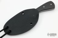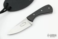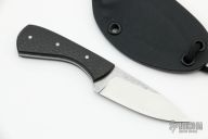 This knife by Steven Kelly features a satin finished drop point blade, .094" blade stock and .915" blade depth, full tang construction. The handle has carbon fiber scales with stainless steel pins. Comes with a kydex neck sheath. Excellent condition.