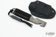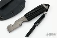 This Cop Tool from Wilson Tactical features a bead blasted serrated blade with strap cutter and sharpened front edge, .190" blade stock and .997" blade depth, full tang construction with black paracord wrapped grip, lanyard hole at the butt. Comes with kydex sheath with IWB loop. Excellent condition.