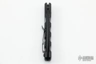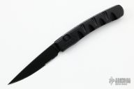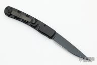 The Virus by Piranha Knives features a black drop point blade with a black aircraft aluminum handle. Black stainless clip. Smooth opening, strong lockup. Excellent condition. Includes original box, papers and drawstring pouch.