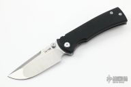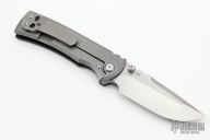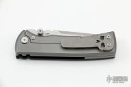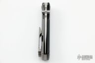 This Chaves Ultramar Redencion Drop Point features a satin finished blade with the Chaves logo, dual thumbstuds, and notched thumbrest. The handle is made up of a black G10 scale, tumbled titanium skull pocket clip (positioned for tip up carry), and a matching titanium backspacer. Has overtravel stop. Blade is centered when closed, and locks up with no play. Comes with box and additional clip. Excellent Condition.
