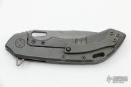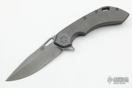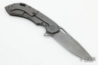 This Wayfarer 247 from Olamic Cutlery features a tumbled finished blade with swedge, thumbhole, notched thumb rest and flipper. The titanium handle scales are titanium with a matching pocket clip is positioned for tip up carry with a ceramic ball inlay, floating titanium backspacer. The Wayfarer 247 is very comfortable in the hand and flips well with no wrist action needed. Blade is centered when closed and locks up with no play. Comes with a padded zippered case that is not original.  Excellent Condition.