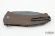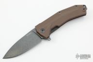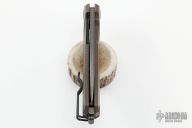 This KUR flipper by Lion Steel features a tumble finished blade with flipper. The handle has a G-10 frame, stainless steel liner and tip up reversible clip, tumbled titanium backspacer, lanyard hole at the butt. Rides on bearings, nice detent, lockup and blade seating. Comes with original box and papers. Excellent condition.
