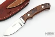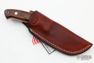 This Loveless Style Randall Hunter by Carl Colson features a mirror polished blade with .167" blade stock and 1.075" blade depth, full tapered tang construction. The handle has a 416 stainless steel guard and pins, lanyard hole at the butt, AAAA Desert Ironwood burl scales with red liners. Comes with a Wickett & Craig black leather sheath made by Carl Colson. Excellent condition. Comes with COA dated 08/30/2020 and #958 on the blade and sheath.