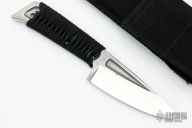 The Boye Basic 3 is a powerful working knife for the ocean environment, designed for maximum versatility, strength, and compactness. Has a Dendritc Cobalt blade with .258" thickness and 1.418" blade depth. The blade has a blunted tip to prevent accidental puncturing of any fragile/inflatable maritime gear. Integral construction for lightness and strength. Comes with a black nylon sheath with brass liner (original). Has some light scratches, otherwise excellent condition.
