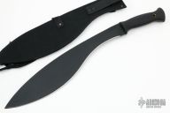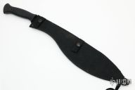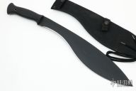 The Kukri blade, with its markedly downward curved .151" thick blade, has long been identified with the Gurkha Warriors of Nepal, the ferocious mercenaries who have wielded this blade for over 150 years in the service of the British Empire. The Cold Steel Gurkha Kukri was inspired by Cold Steel President, Lynn C. Thompson’s close association with Dr. Maung Gyi, chief instructor of the American Bando Association, and a renowned martial artist with wide-ranging knowledge and skills. Under Dr. Gyi’s tutelage, Lynn gained insight into the full potential of the Kukri and learned it was not just a chopping weapon but a piercing, slashing, and smashing weapon as well. Smashing techniques allow the Kukri to function as a hammer or mallet or to deliver non-lethal blows in a self-defense role. A concentrated blow with the back of the blade can break bones or be lethal if directed at the head. With Dr. Gyi’s input, Thompson designed a longer, narrower point for the Gurkha Kukri with more distal tapering to the spine. This resulted in a thinner, sharper point which can be deeply driven into thick, tough targets with minimal effort. Finally, a masterfully designed Kraton handle was added to maximize the blade’s fierce potential. Perfectly contoured and deeply checkered, it offers a superb non-slip grip and cushions the hand from the shock of the hardest blow. The Gurkha Kukri’s Carbon V blade will out-chop any factory or handmade knives; including swords twice its size, even expensive, hand forged Japanese Katanas. It’s the heaviest Kukri on the market. The blade is almost an inch wider near the tip than at the handle, shifting the knife’s balance point forward to allow a substantial blow to be struck with minimal effort, using inertia alone to complete the cut. Each Gurkha Kukri is supplied with a black nylon sheath to protect the blade and allow you to wear it safely and securely on your side always ready to defend you and your loved ones. Excellent condition.