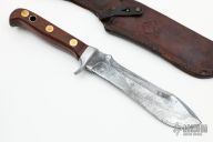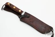 This Vintage White Hunter by Puma is the ultimate outdoorsman’s knife, originally designed by African professional hunters. It features a curved blade for cutting, slicing and skinning and a strong back edge for hacking. Handmade by skilled craftsmen with cocobolo scales. Comes with original brown leather sheath. Has some scratches and patina, otherwise good condition for its age. #76582 on guard.
