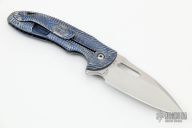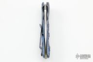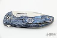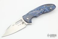 This Sentry framework flipper by Korth Cutlery features a hand rub satin finished blade with thumbhole, notched thumbrest and flipper. The handle features an anodized and hand carved titanium frame by Rudy Lala, notched jade G-10 backspacer, tip up carved titanium clip. Includes IKBS (Ikoma-Korth Bearing System) for smooth and fast opening that requires no wrist action. Nice blade seating, detent, and lockup. Outstanding work with great attention to detail. Excellent Condition. #019